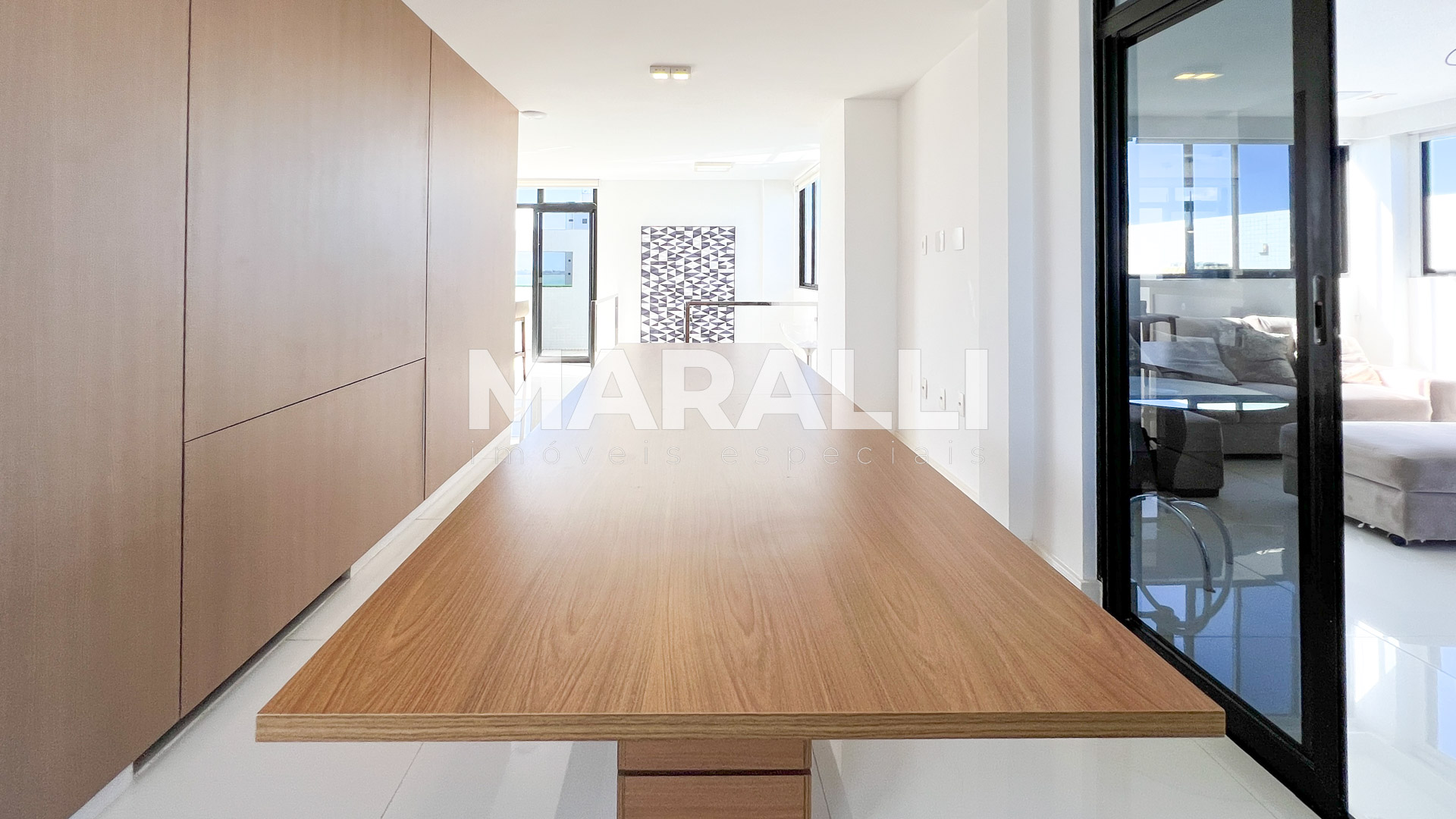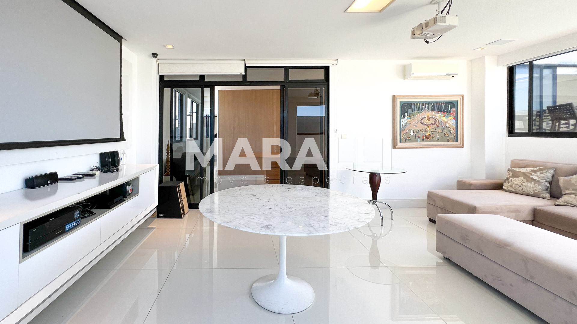 - Salas com piso de porcelanato Diamante Polaris Polido Portinari 1 metro x 1 metro, incluindo área gourmet em Ecoquartzo Branco